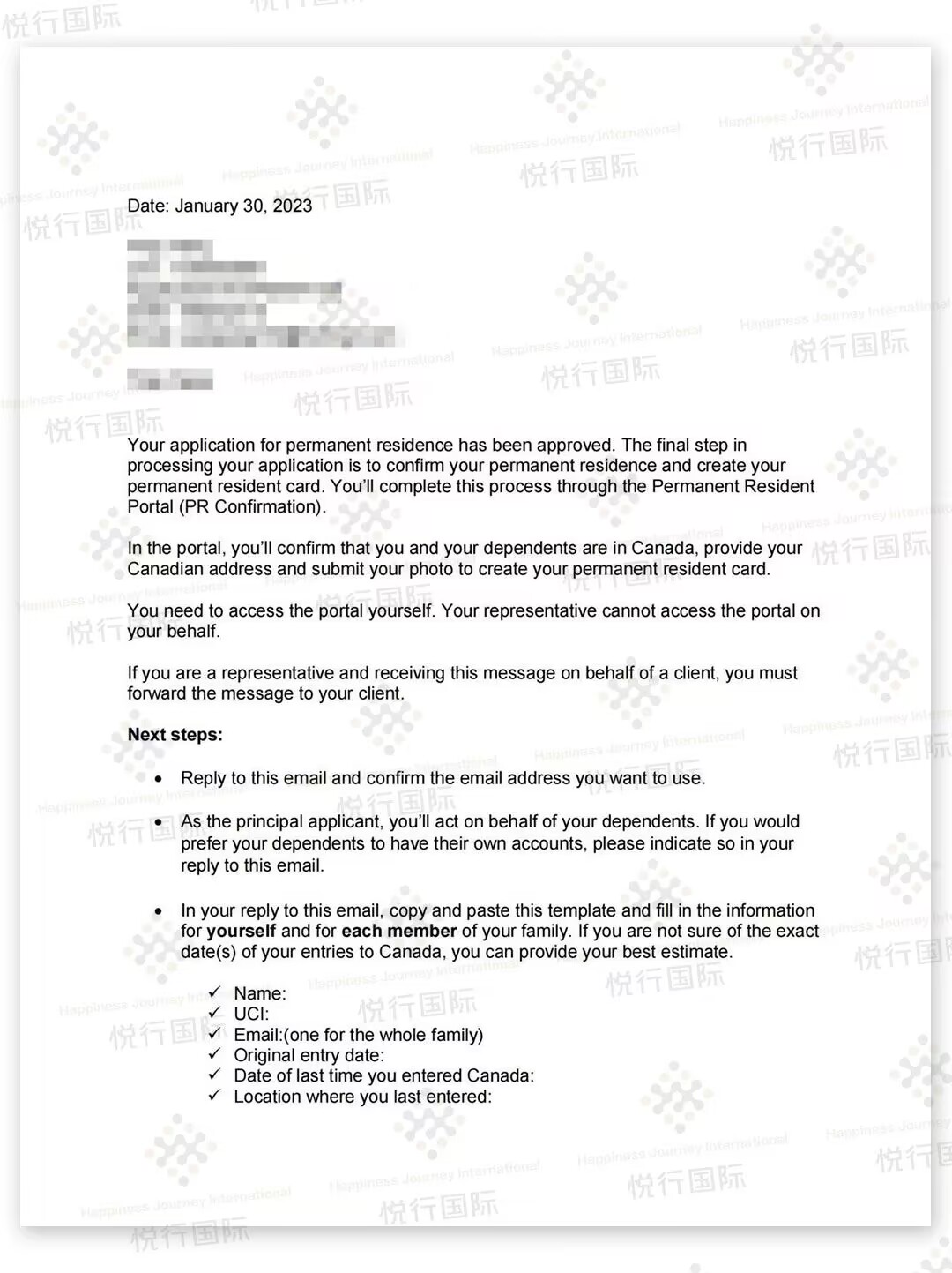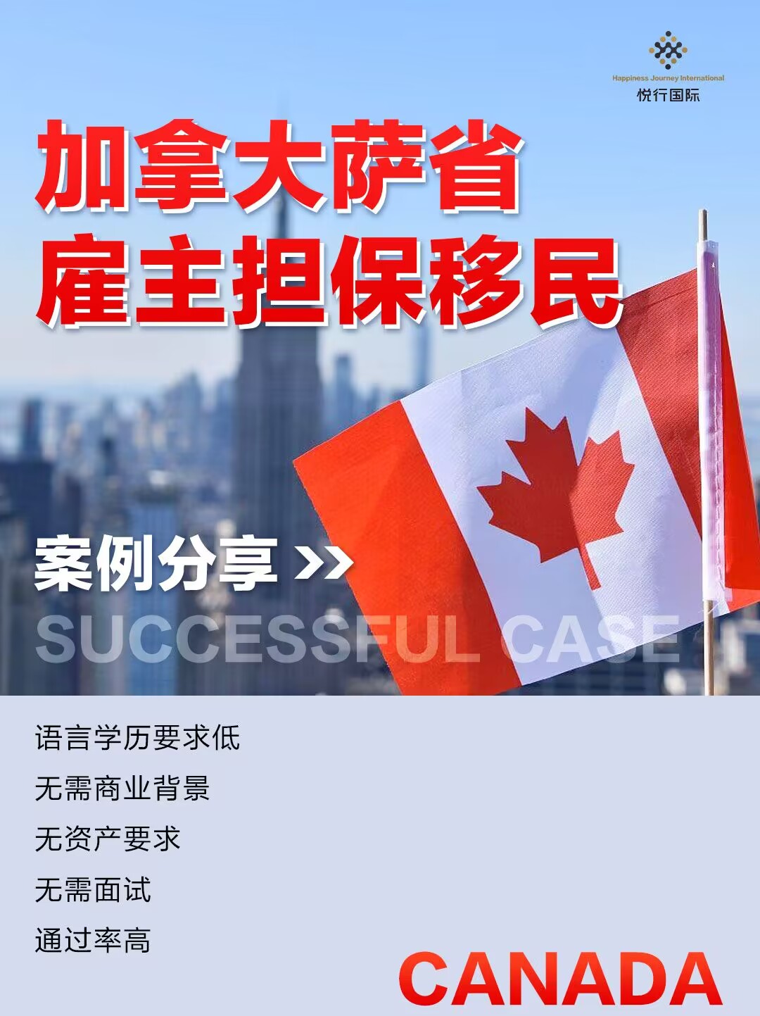 加拿大薩省雇主擔(dān)保移民 案例分享 語言學曆要求低 無需商業背景 無資産(chǎn)要求 無需面試 通過率高 加拿大移民又一獲批!一步到位獲批PR! 悅行出國,爲您的移民之路保駕護航。 加拿大移民成功案例 恭喜Y女士獲得...