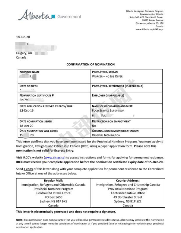 L女士,33歲,學曆是市場營銷本科, 國内從事的工作是某服務公司市場經理。一直對加拿大充滿向往。於2019年3月份初次接觸悅行國際,悅行根據客戶填寫的評估表,結合客戶實際情況推薦客戶申請阿省的省提名。於2019年3月簽約。期間開始準備移民相關材料。2019年5月遞交LMIA申請,3個月後獲批,然後開始申請工簽,3周後獲得工簽,開始工作,工作三個月後,於2019年12月遞交省提名申請,於2020年6月獲批省提名!接下來L女士繼續等待聯邦獲批即可。