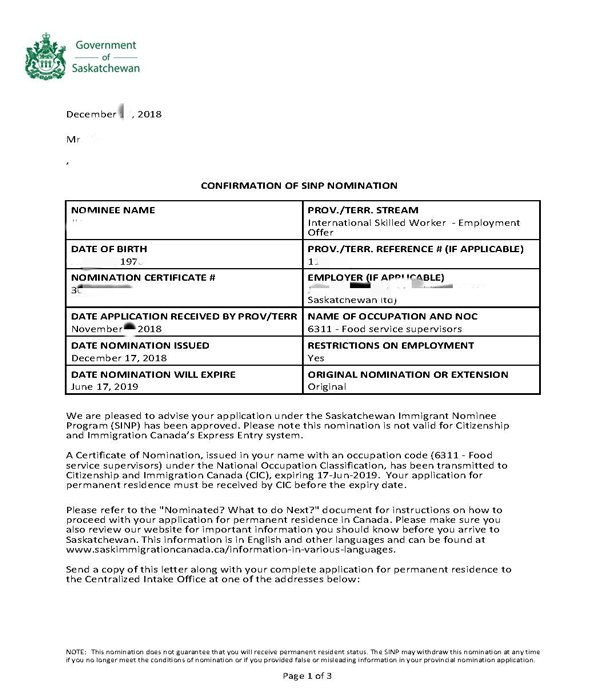 G先生,40歲歲,本科,在國内從事會展中心推廣經理的職務。想帶著孩子去加拿大生活。於2018年5 月份初次接觸悅行國際,悅行根據客戶填寫的評估表,結合客戶實際情況推薦客戶申請薩省的省提名。於2018年5月簽約。期間開始準備各種移民相關材料。2018年7月遞交JAL申請,於2018年10遞交省提名申請,於2018年12月獲批!從遞交到獲批隻用不到兩個月的時間,接下來G先生繼續等待聯邦獲批即可。