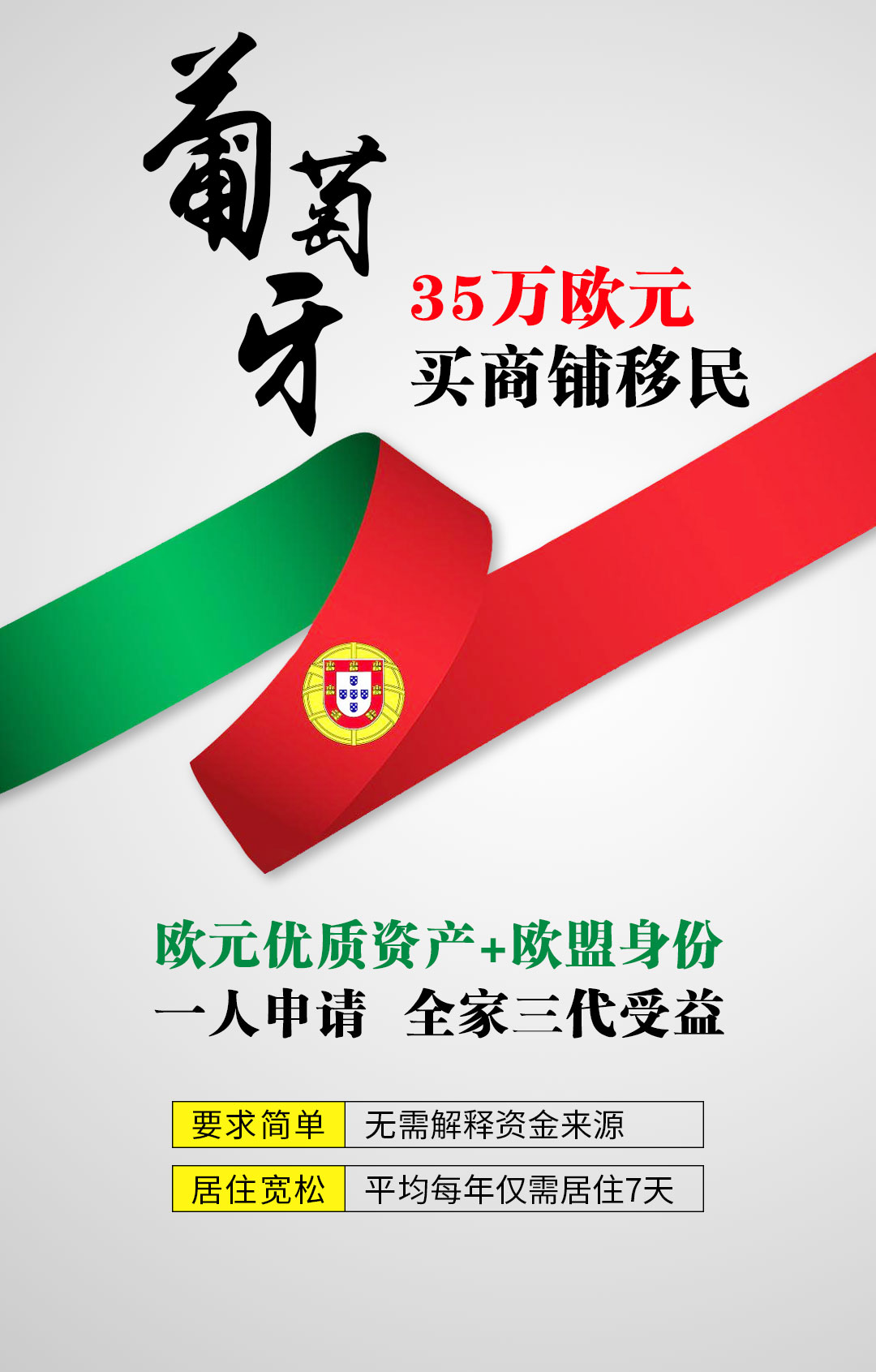 5️⃣隻要每年平均住滿7天,5年後(hòu)可申請葡萄牙永居或國(guó)籍;