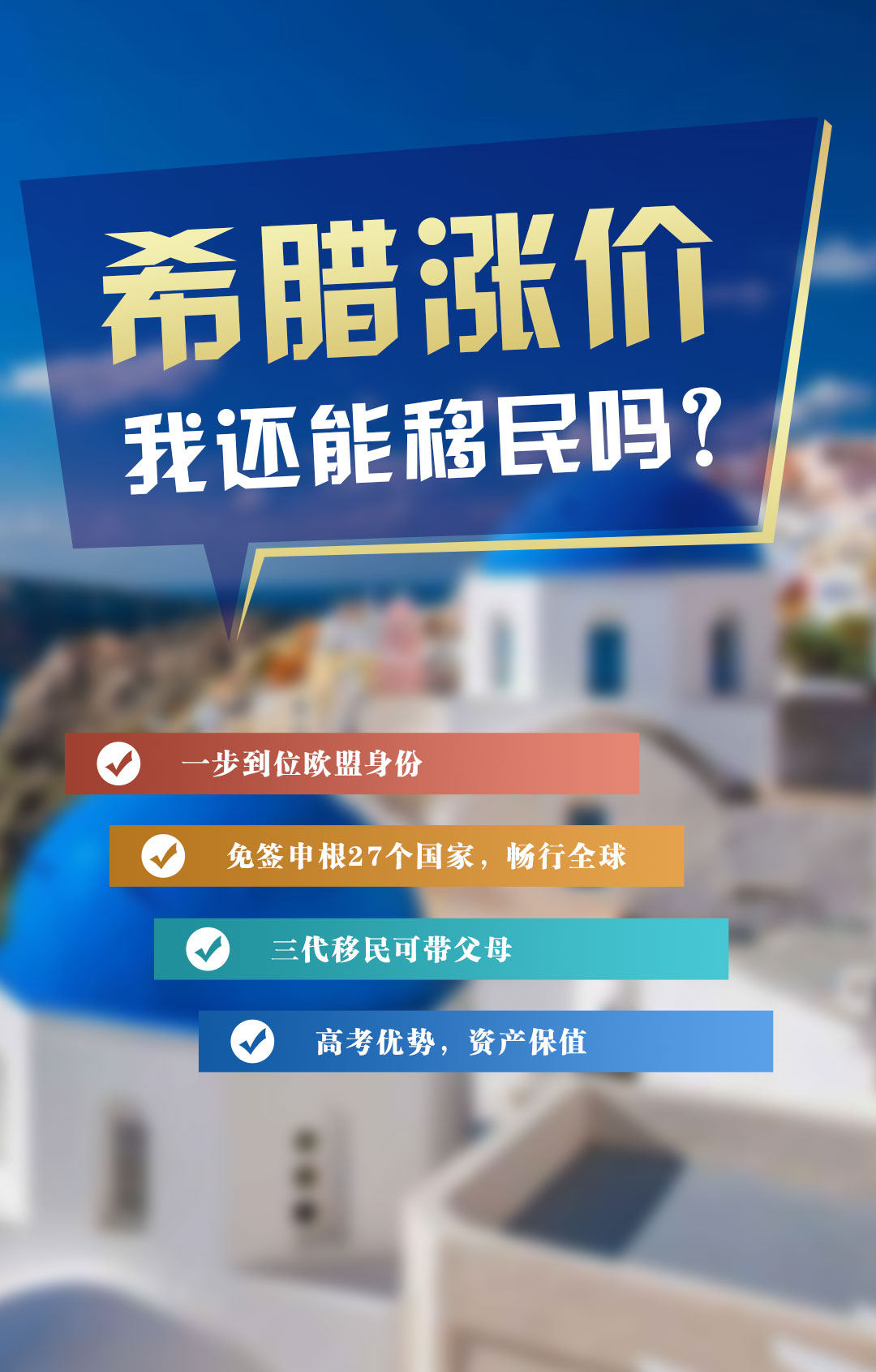 按照希臘黃金居留修正案消息,2023年7月31日後開始實施新移民政策規定。有部分客戶由於(yú)各種原因無法趕上漲價末班車(chē),認爲未來隻能通過投資50W歐元才可以獲得身份,這個擔心是不必要的。此次希臘公布的漲價區範圍爲:首都雅典...