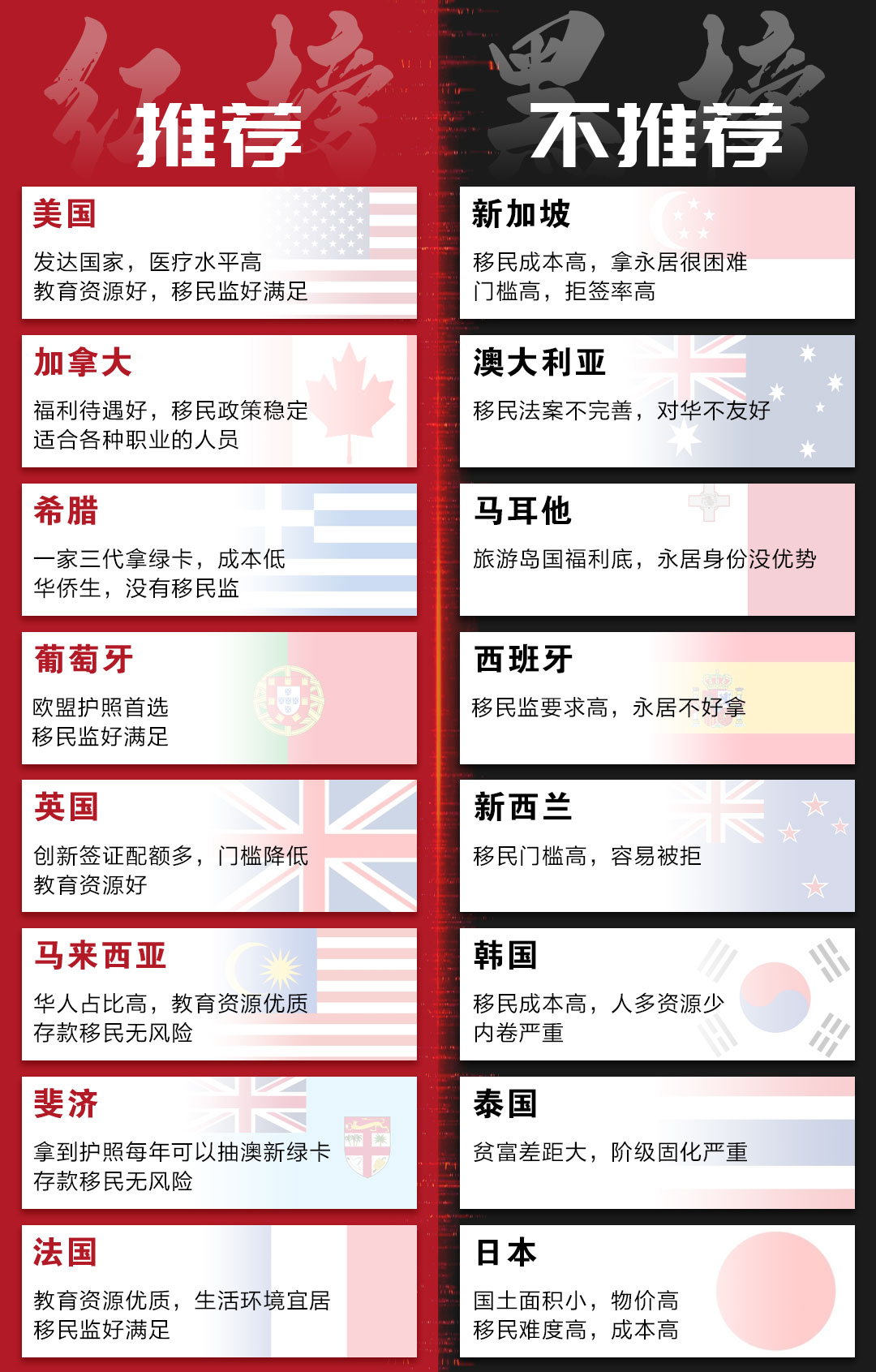 揮淚整理!移民國家紅黑榜【抓緊收藏】