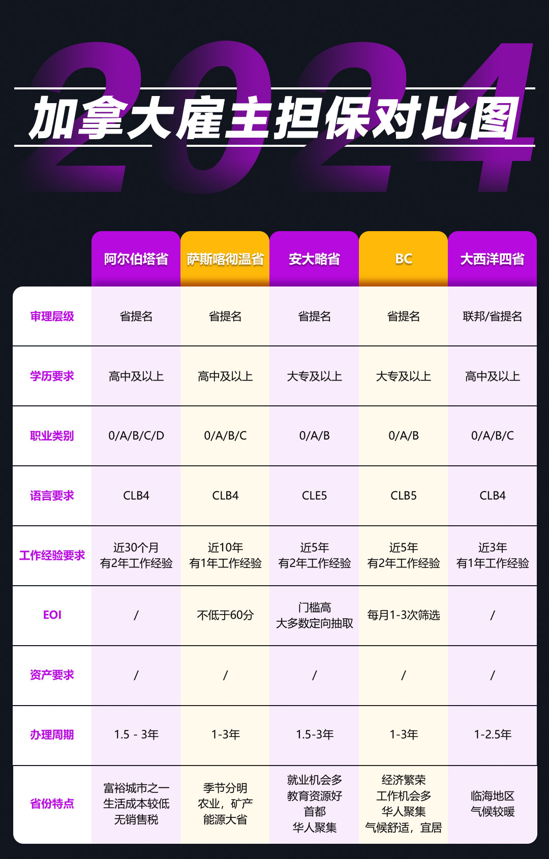 阿省:面積很大,城市較爲富裕,崗位比較多,目前走旅轉工,或者白領崗都很順暢(chàng)。 薩省:雇主資源需要匹配,JAL也開始嚴查,價格也對(duì)比前幾年有所上升。 安省:打分門檻高,适合符合緊缺職業需求的申請人。同時也适合符合條件的申請人...
