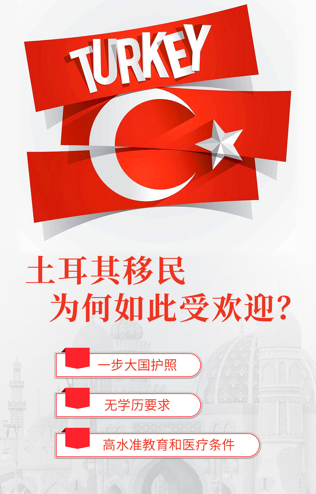 土耳其移民項目,允許外國人通過投資獲得土耳其公民身份。是手續簡便,對申請人自身要求不高的移民項目。收到移民者歡迎的原因,可以歸結爲以下幾點(diǎn):一.優越的地理位置:土耳其地處(chù)歐亞非三大陸交彙處(chù),擁有得天獨厚的地理位...