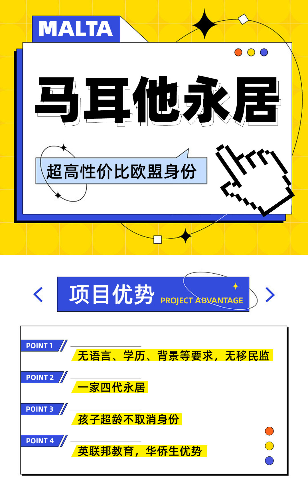 2021年3月26日正式推出,非歐盟公民通過捐款+房産(chǎn)投資的方式,即可獲得馬耳他永居身份。馬耳他是唯一可以辦(bàn)理四代移民的國家。 以下附屬申請人符合要求(一家四代)都可一通獲得身份: 1.配偶、未成年子女; 2.未婚、經濟不獨...
