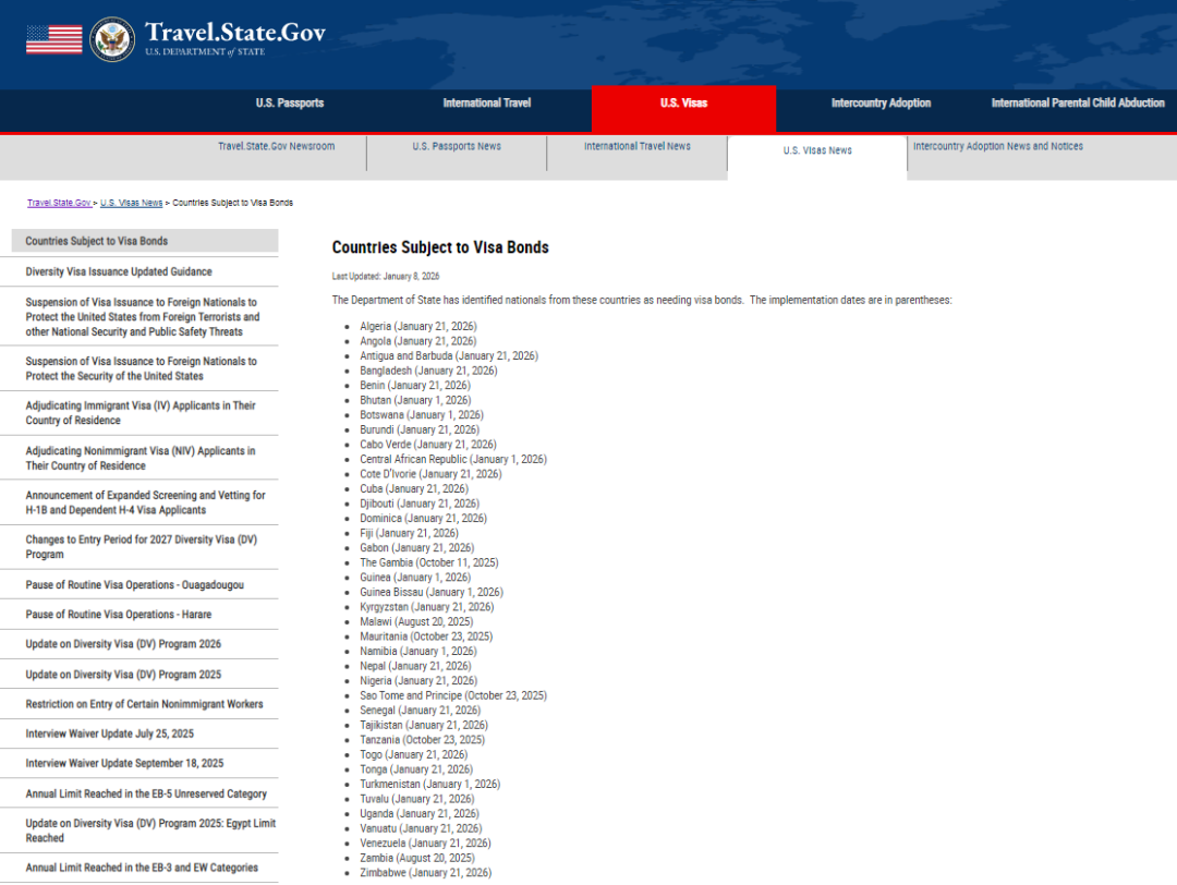 據Nepyork1月9日報(bào)道,美國國務院近日宣布,對簽證保證金(Visa Bond)制度作出重要調整:原本僅限三個機場(chǎng)的強制入境規定,正式擴展至九個指定國際機場(chǎng)。