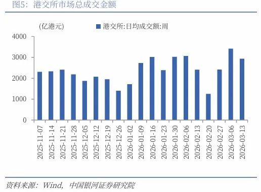 根據中國銀河證券的統計,中東戰争爆發後的一周,港交所日均成交額爲 3415.85 億港元,比開戰前一周增加瞭(le) 997.49 億港元,創(chuàng)下半年多來的單周最高成交量。