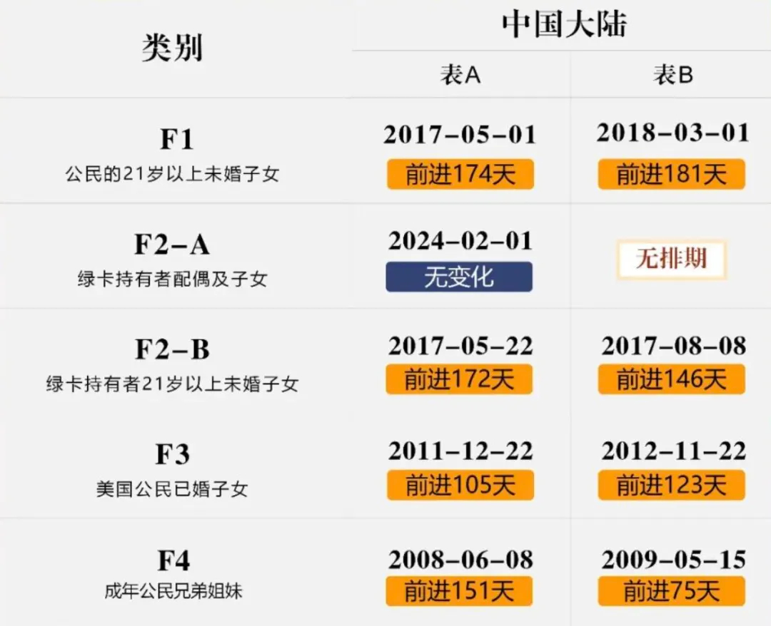 · EB-2:表A無(wú)變(biàn)化,目前在2021年9月1日;表B無(wú)變(biàn)化,目前在2022年1月1日;
