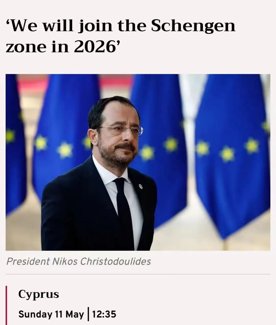 近日,塞浦路斯總統在一場(chǎng)活動上再次宣布:“塞浦路斯将於(yú)2026年加入申根。” 總統強調:“這對塞浦路斯和歐盟都具有重要戰略意義。我們需要歐洲議會的支持,我很高興議長已給予積極回應。”在即将...